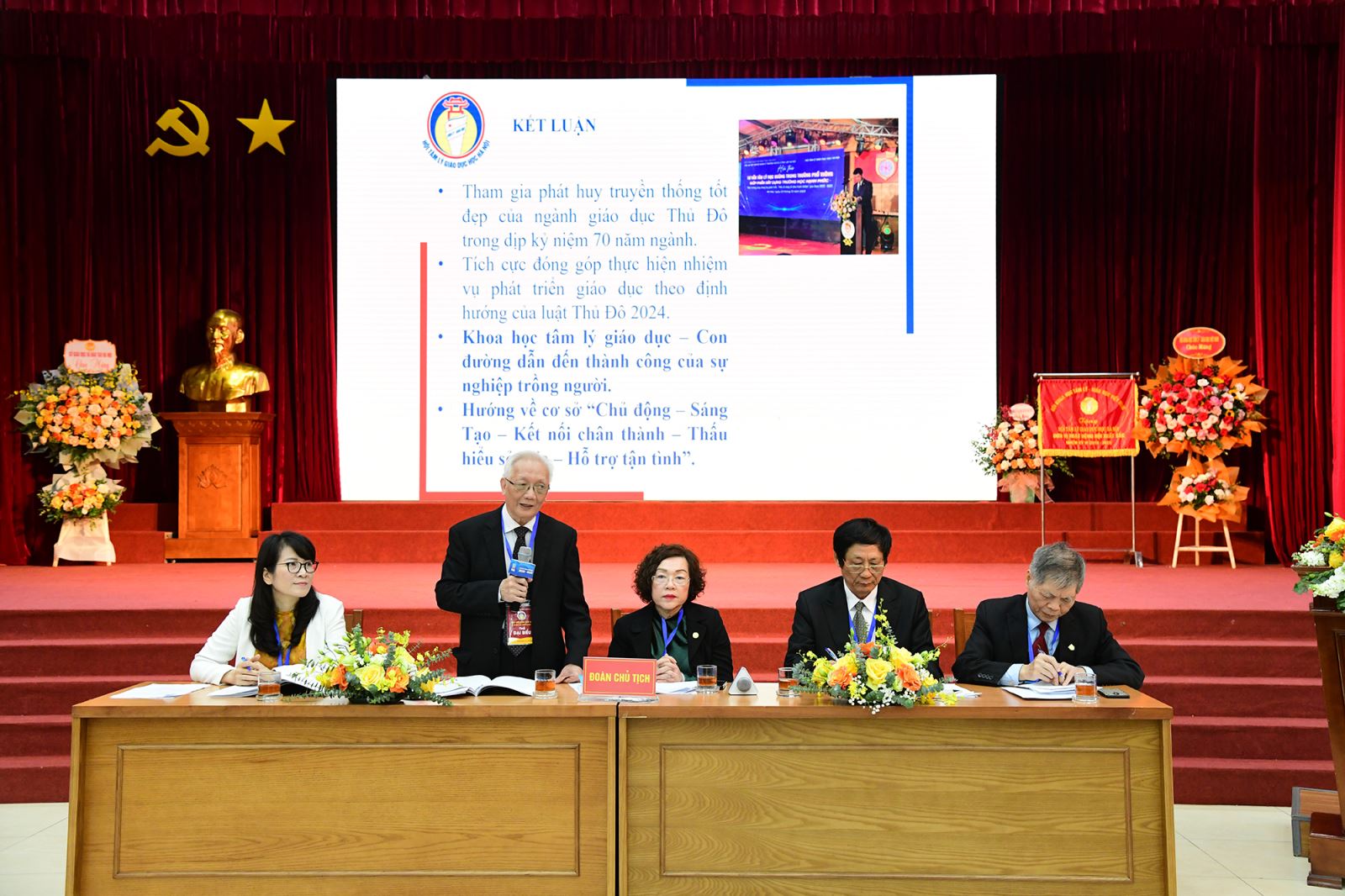 Đánh giá kết quả hoạt động của Ban chấp hành nhiệm kỳ 2018-2023, ông Hoàng Hữu Niềm - Chủ tịch Hội Tâm lý giáo dục học Hà Nội cho biết: Hội Tâm lý giáo dục học Hà Nội có hơn 200 hội viên. Ban chấp hành Khóa VI có 53 người đến từ Sở GD&ĐT, các Phòng GD&ĐT, các trường đại học, cao đẳng, học viện, các trường phổ thông trên địa bàn thành phố.