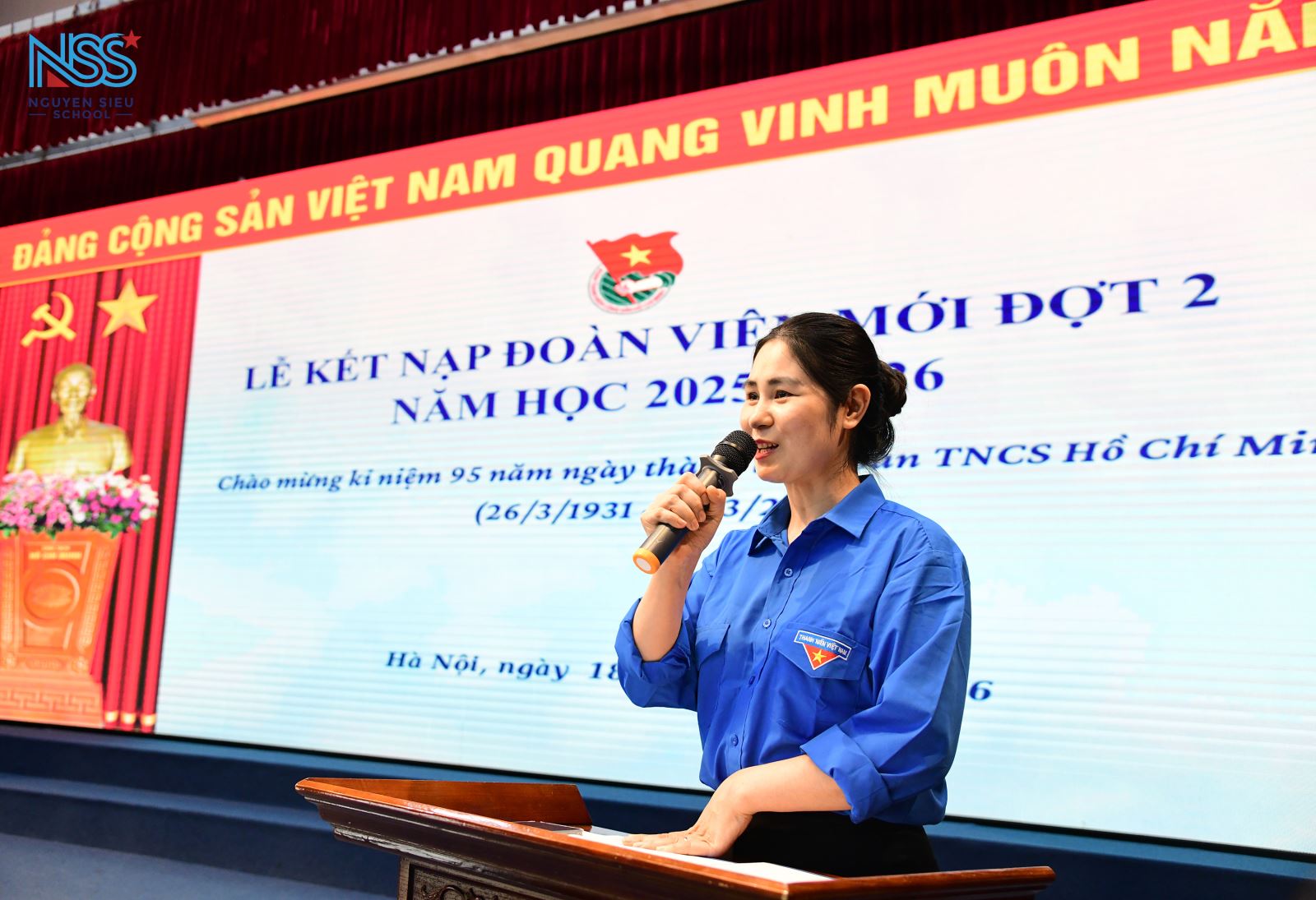 Phát biểu chỉ đạo, cô Nguyễn Thị Thanh Nhàn ghi nhận sự cố gắng, trưởng thành của các Đoàn viên, đồng thời bày tỏ kỳ vọng các em sẽ tiếp tục phát huy tinh thần trách nhiệm, bản lĩnh và nhiệt huyết của tuổi trẻ, góp phần xây dựng Đoàn trường ngày càng vững mạnh.