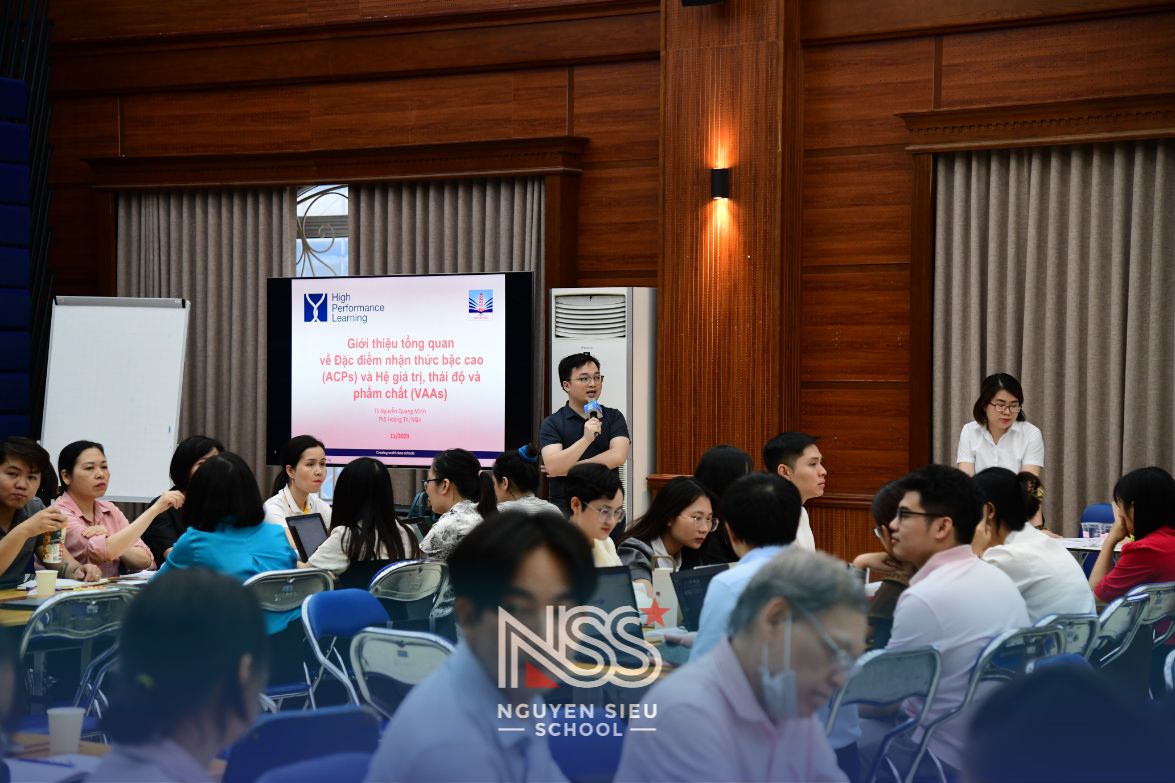 Chiều 3/11/2023, từ 16h đến 18h30, buổi tập huấn nội bộ số 1 của dự án HPL dành cho cán bộ, giáo viên, nhân viên (CBGVNV) toàn trường THCS và THPT Nguyễn Siêu đã diễn ra tại Hội trường tầng 5 nhà H. Tiếp đó, buổi tập huấn số 2 được tổ chức ngày 13/11, lan tỏa tinh thần HPL từ đội ngũ cán bộ cốt cán về đến từng cán bộ, giáo viên.