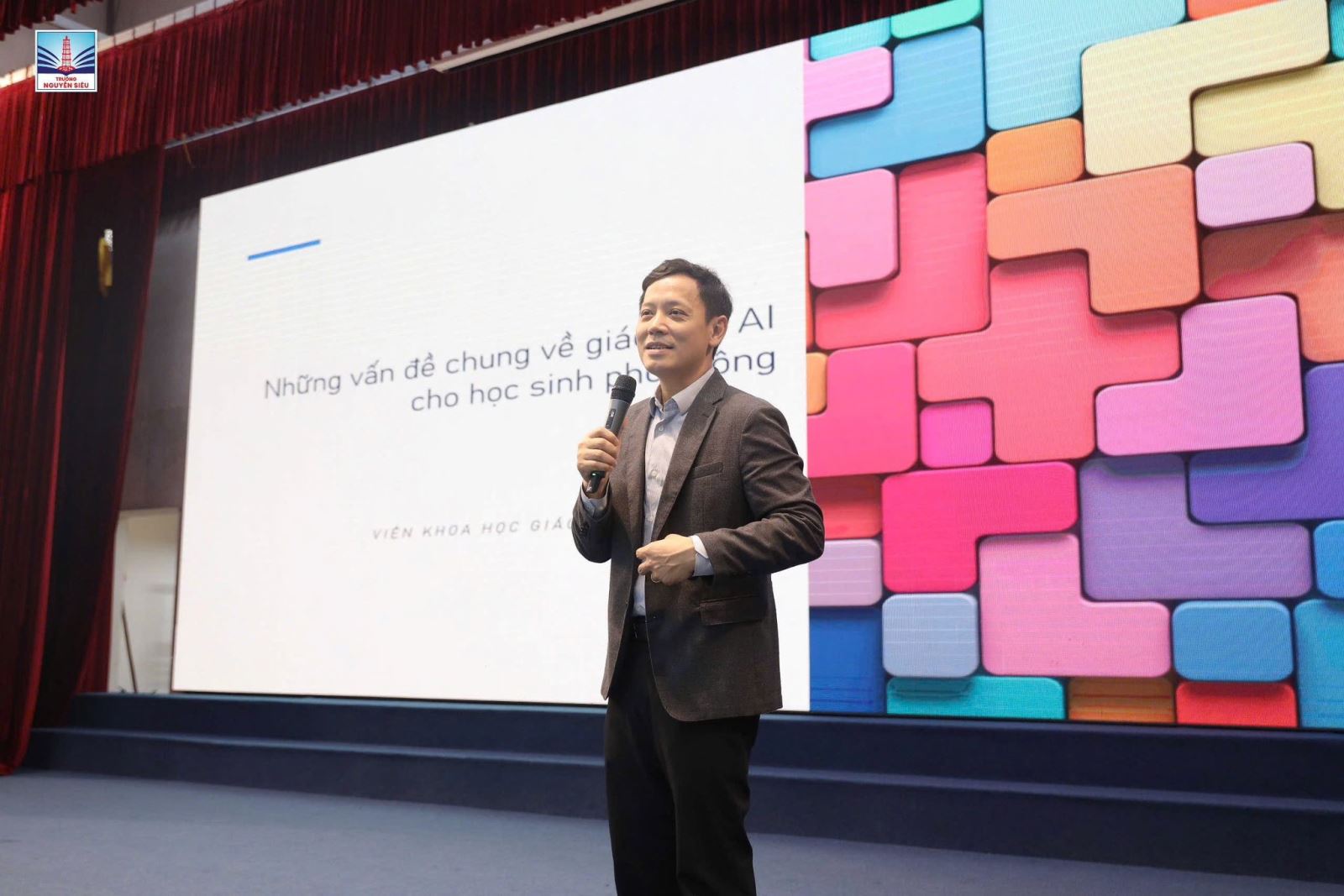 Cũng chia sẻ về chủ đề giáo dục AI cho học sinh phổ thông trong phiên Diễn đàn, GS.TS Lê Anh Vinh - Viện trưởng Viện Khoa học Giáo dục Việt Nam đã gợi mở những vấn đề trọng tâm về AI và vai trò của công nghệ trong học tập và phát triển cá nhân, đồng thời chia sẻ về các phương pháp nuôi dưỡng tư duy, năng lực thích ứng và khả năng học tập suốt đời.