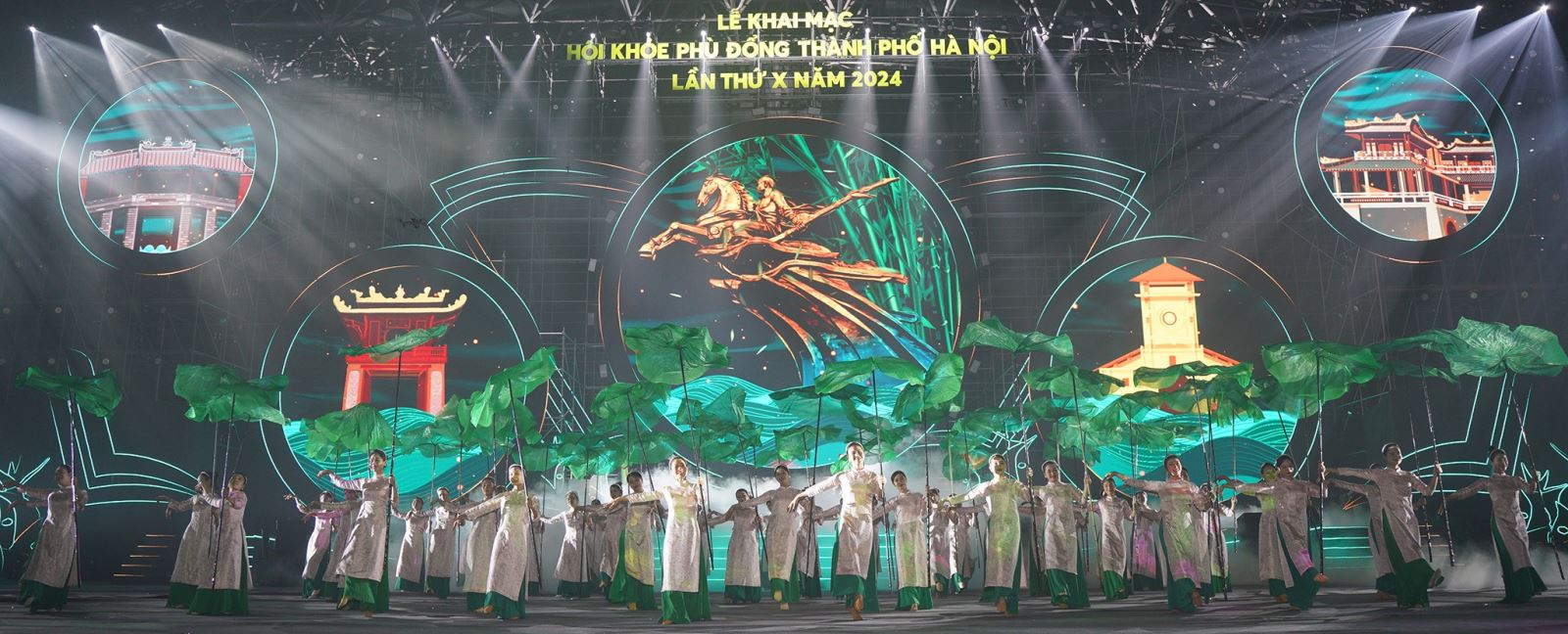 Màn trình diễn đẹp mắt trong Lễ Khai mạc Hội khỏe Phù Đổng thành phố Hà Nội lần thứ X năm 2024 (Ảnh: Tuổi trẻ Thủ Đô)