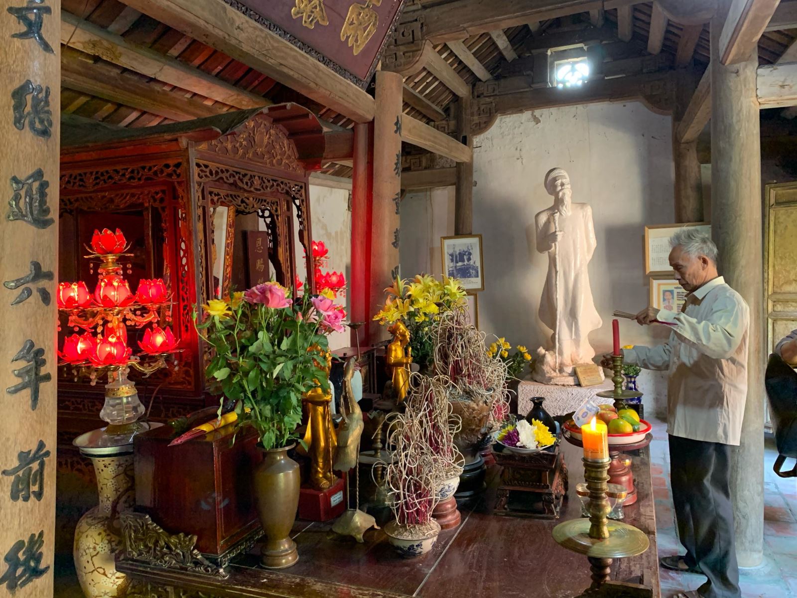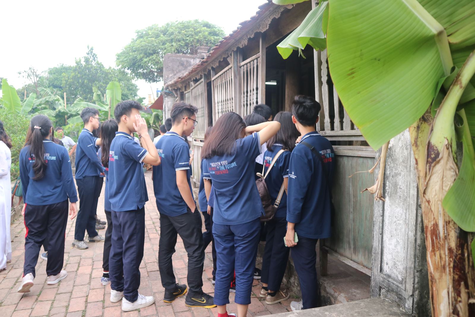 Ấn tượng lớn nhất khi được đặt chân đến mảnh đất Hà Nam chính là sự yên bình, xanh ngát, khác xa với những khói bụi mịt mờ nơi thành phố chen chúc, ồn ào. Nơi đầu tiên các bạn học sinh ghé thăm chính là "năm gian nhà cỏ thấp le te" của nhà thơ Nguyễn Khuyến. Tại đây, đoàn học sinh đã kính cẩn dâng nén hương thơm, tưởng nhớ đến nhà thơ lớn của thế kỉ XIX. Đồng thời, nghe cụ Nguyễn Thanh Tùng - hậu duệ đời thứ 5 của cụ Nguyễn Khuyến giới thiệu về cuộc đời, thân thế, sự nghiệp của Tam Nguyên Yên Đổ.