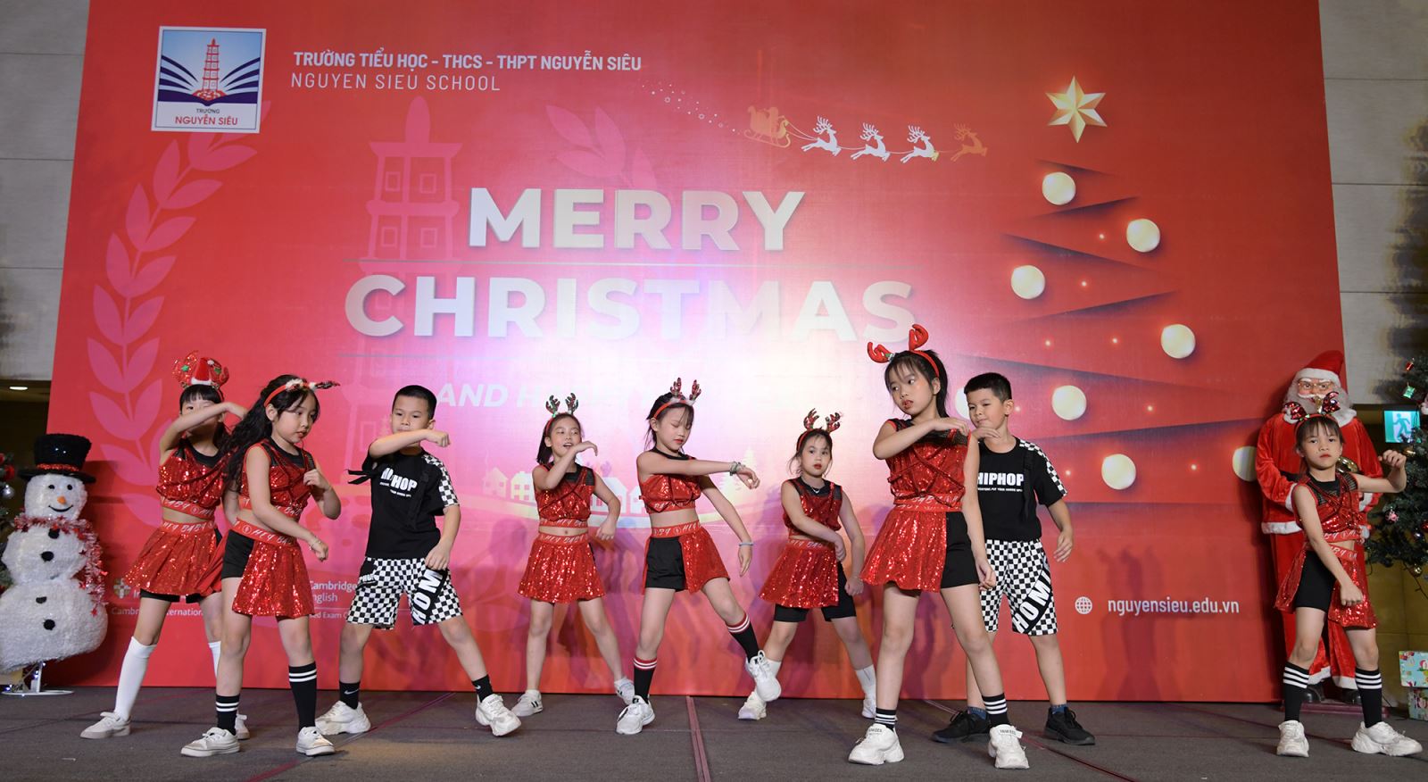 Năm học 2021-2022, các bài học về chủ đề Giáng sinh đều chủ yếu diễn ra trong không gian lớp học, và còn là lớp học trực tuyến. Bên cạnh đó, đối với các lớp Advanced, dự án “Form a Music Band” đã trang bị cho các con kĩ năng làm việc nhóm, sự tự tin thể hiện khả năng của mình. Năm học 2022-2023, nhằm đẩy mạnh hơn nữa việc phát triển các kĩ năng cho học sinh, không gian lớp học đã được mở rộng thành một lớp học lớn của toàn khối. Học sinh khối 2 tự tin tỏa sáng ở một cấp độ cao hơn, tại một sân khấu lớn hơn, với sự cổ vũ của nhiều bạn bè và cha mẹ. Thông qua các hoạt động trong chương trình, học sinh có thêm hiểu biết về văn hóa trong ngày lễ Giáng sinh, tham gia trả lời câu hỏi và nhận về những phần quà xinh xắn.