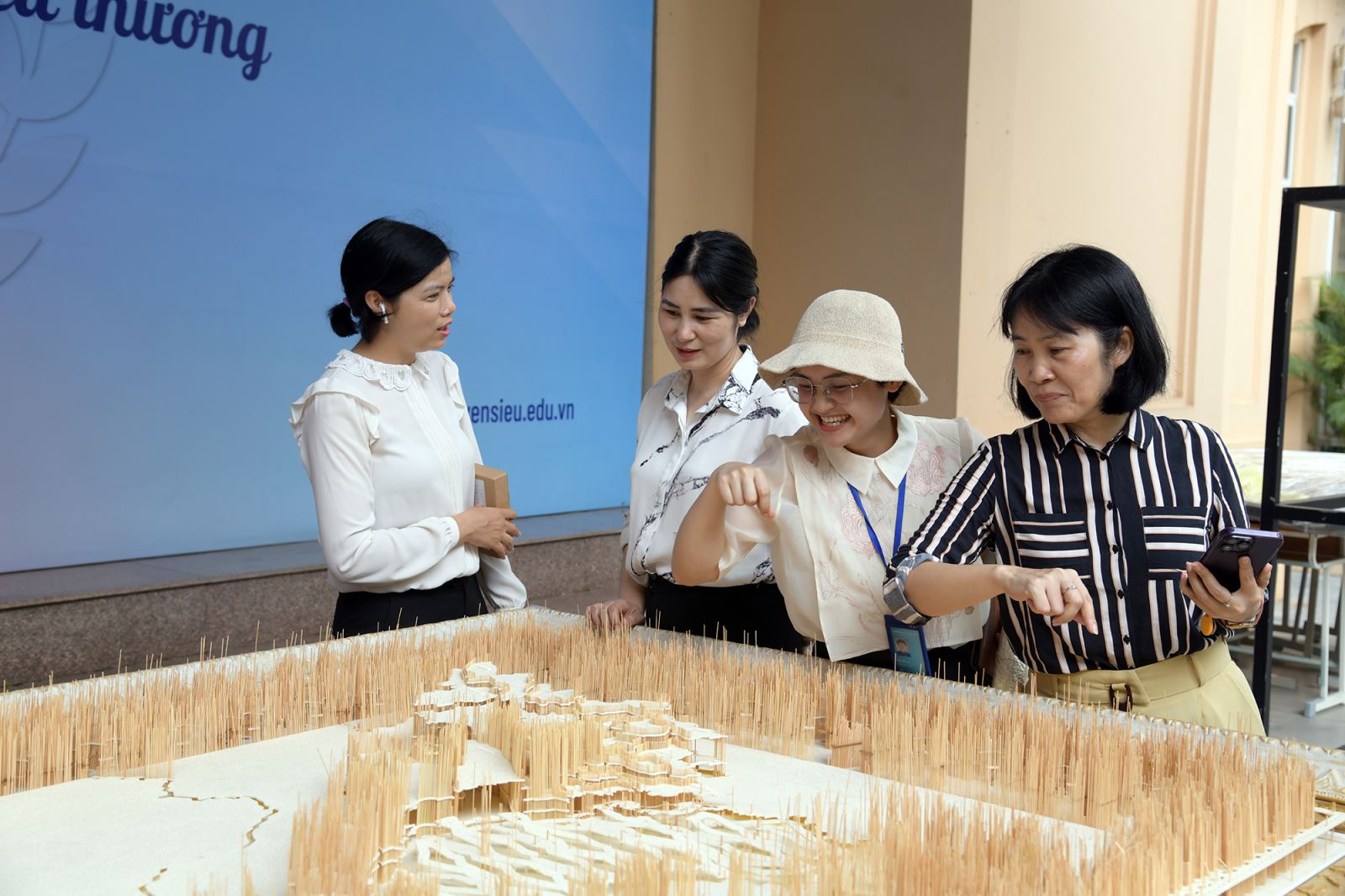 Bản đồ Việt Nam lộ diện và những trải nghiệm đầu tiên đầy thú vị. Chiều 10/8, những học sinh đầu tiên sẽ tham gia hoạt động cắm tăm giang tại sân trường.