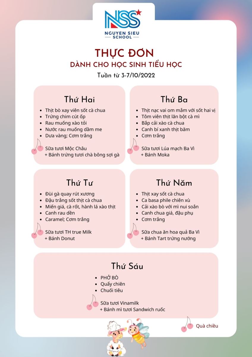THỰC ĐƠN TUẦN 5/5 - 9/5/2025