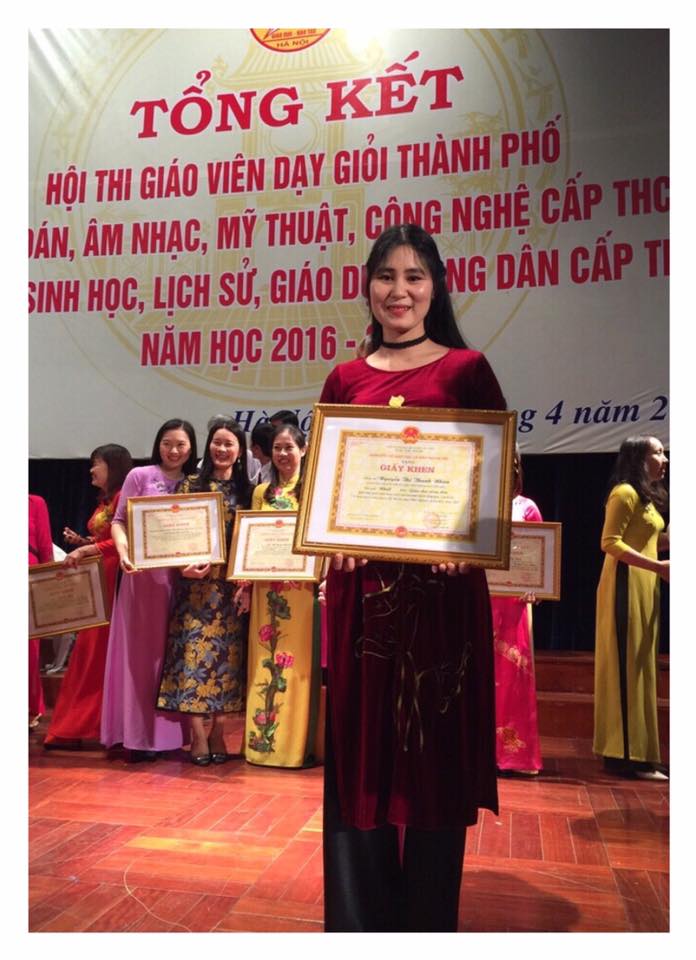 Cô Nguyễn Thị Thanh Nhàn nhận giải Nhất hội thi GVDG môn GDCD cấp Thành phố năm học 2016-2017