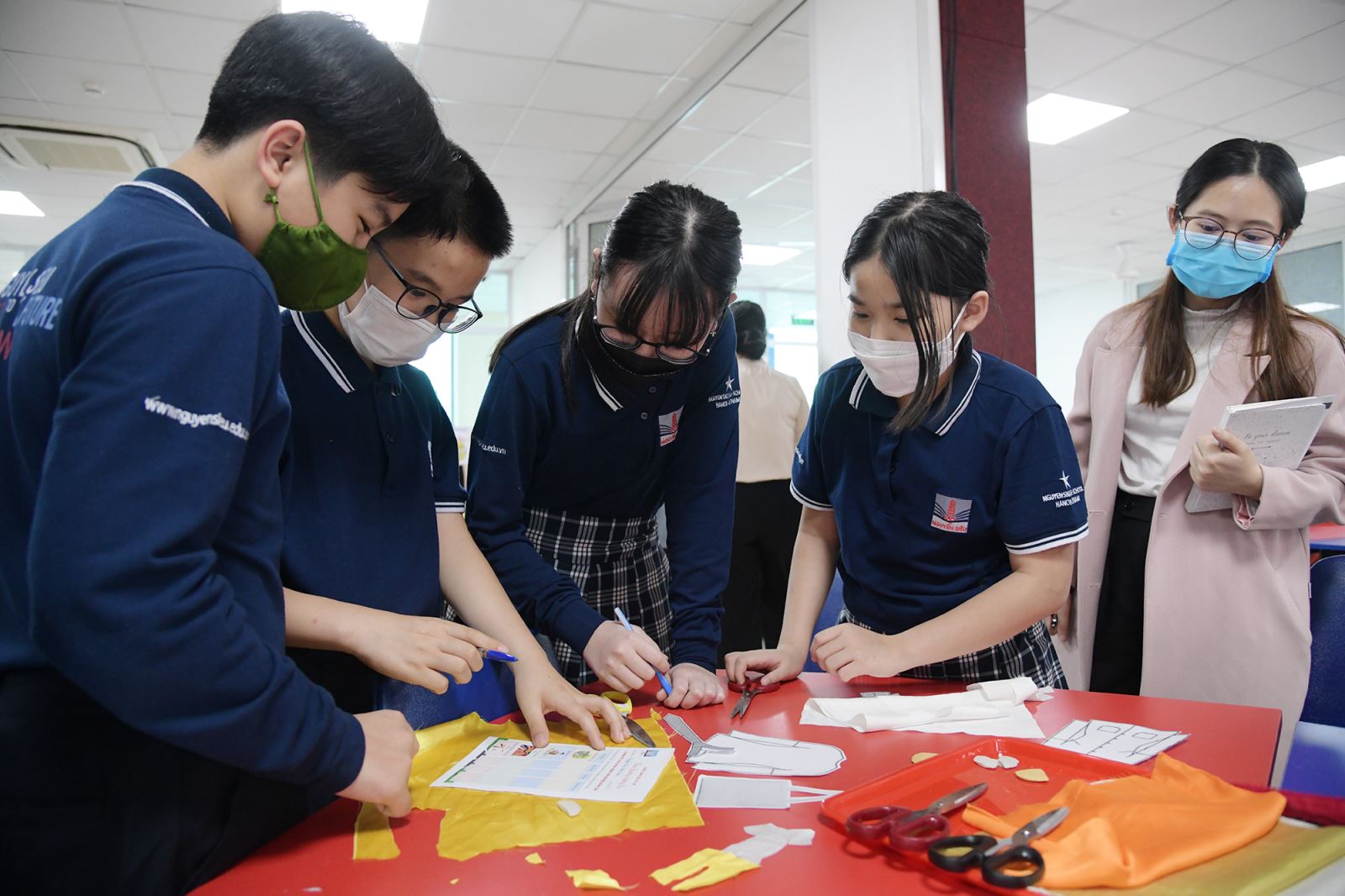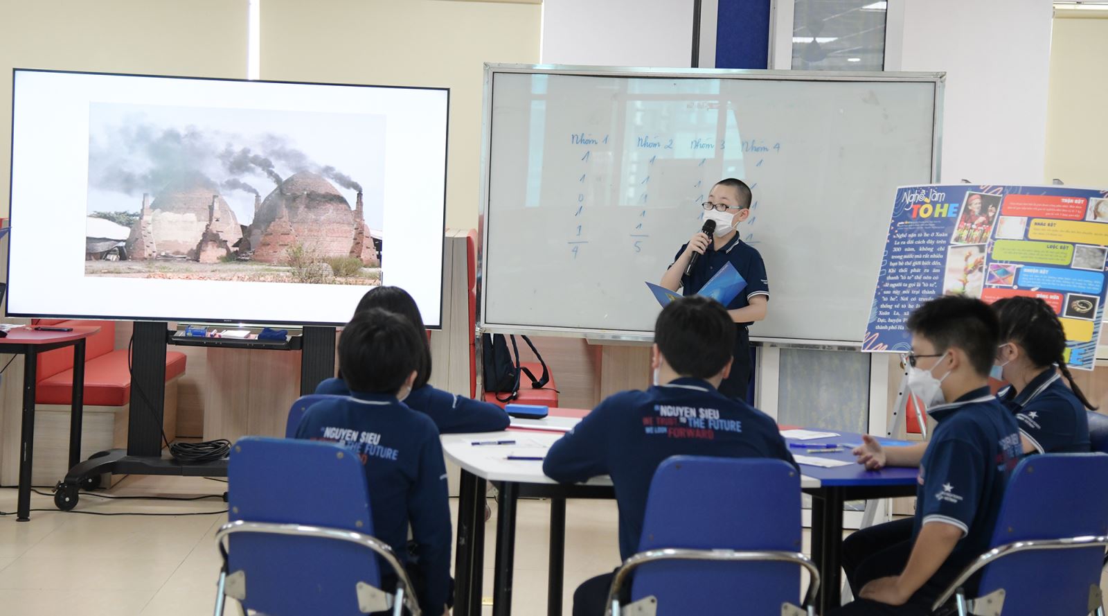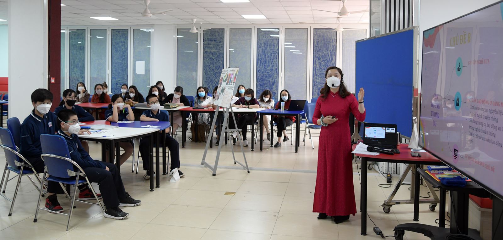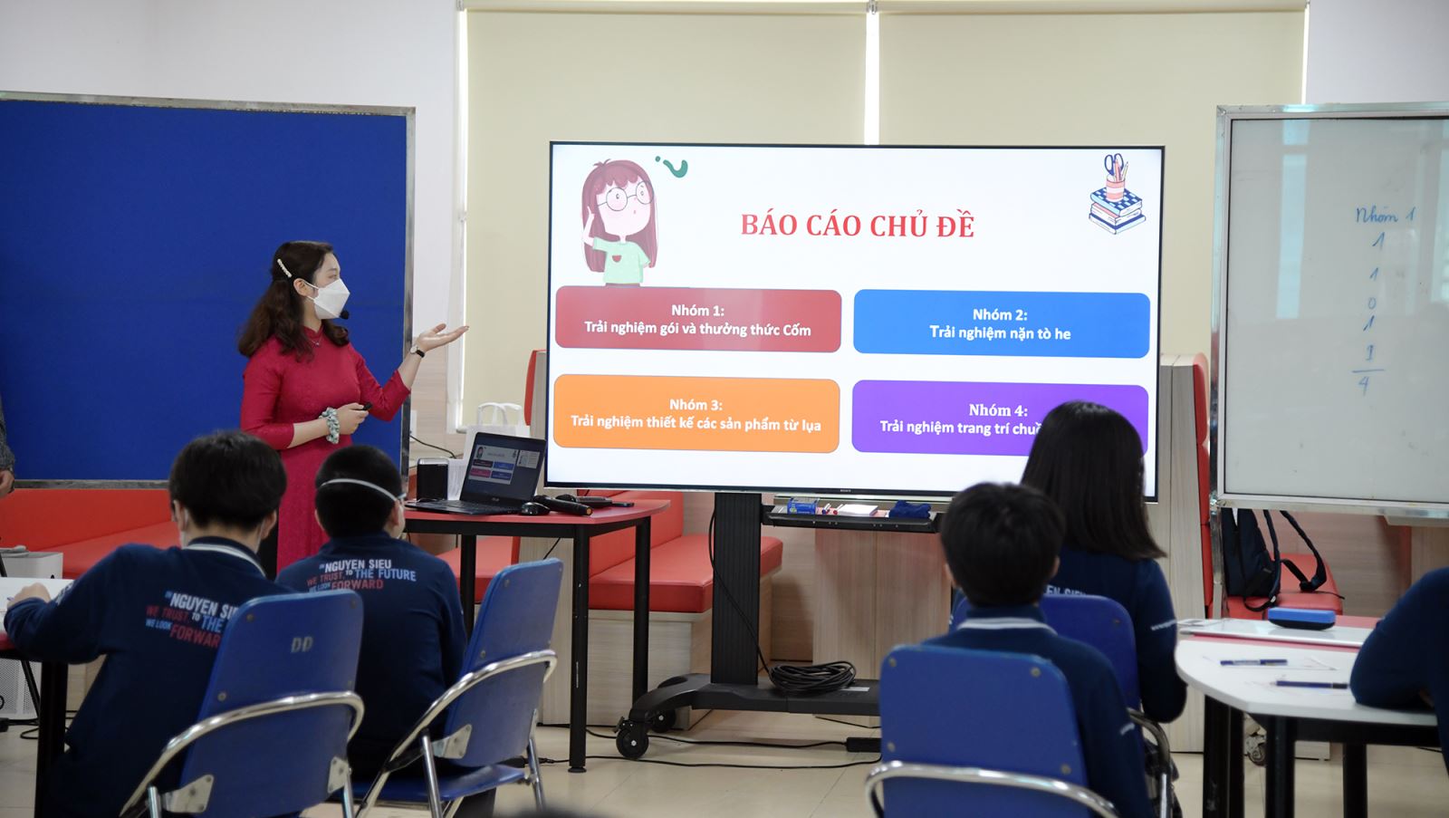 Chiều 19/4, giờ học chuyên đề môn Hoạt động trải nghiệm - hướng nghiệp cấp Quận với chủ đề gìn giữ các làng nghề truyền thống đã được tổ chức tại trường Nguyễn Siêu.