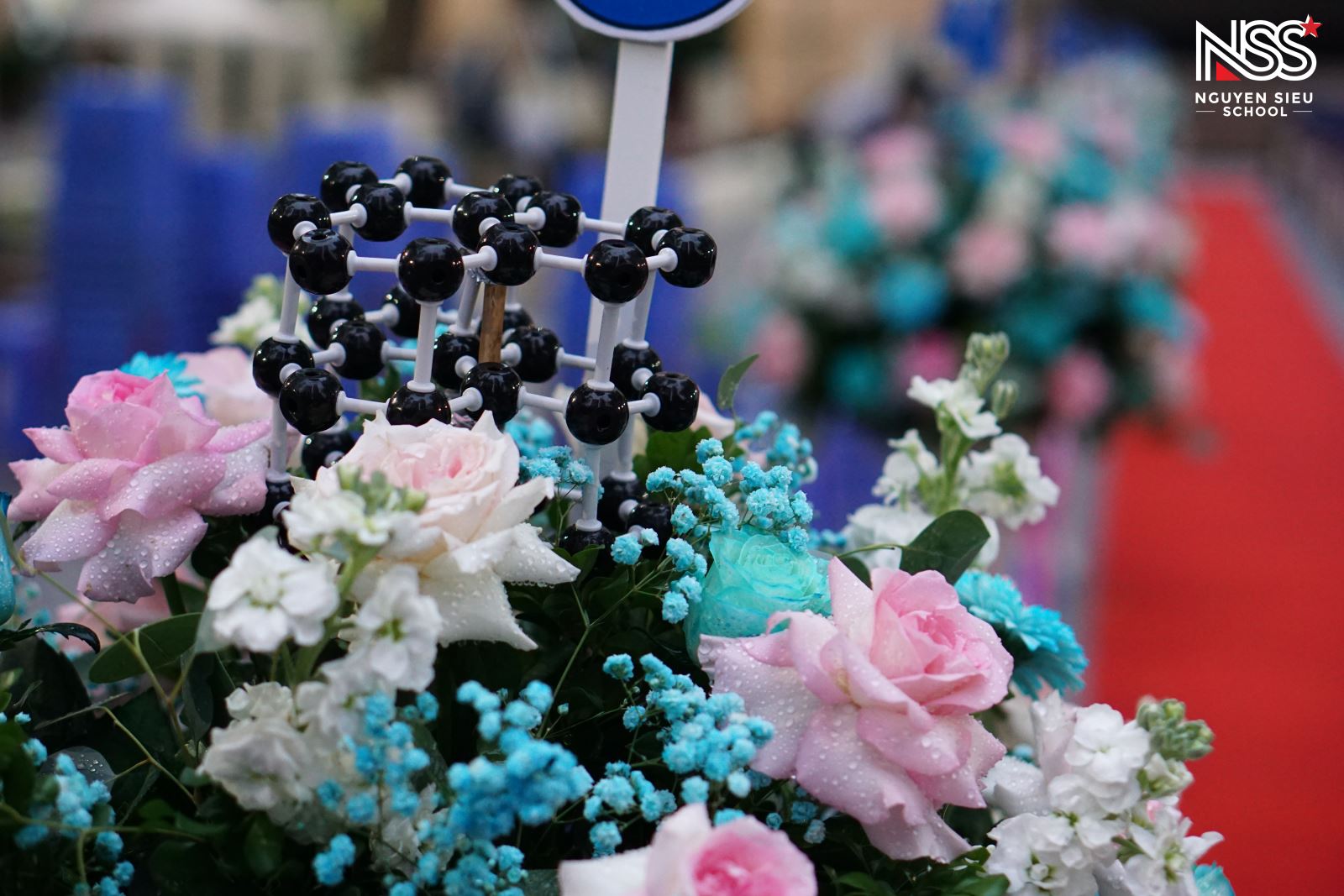 Trong không gian Lễ Khai giảng thứ 30 của Nguyễn Siêu, hai hàng hoa chạy cùng Con đường học thuật bao quanh hàng ghế chính, mỗi hàng gồm 12 cột hoa, sắp xếp theo thứ tự từ Lớp 1 đến Lớp 12, tượng trưng cho 3 cấp học và từng giai đoạn của thưở hoa niên rực rỡ. Từ Lớp 1 của bậc Tiểu học tới Lớp 12 của bậc Trung học. Các cột hoa được trang trí theo tone hồng, xanh, trắng, cùng với một đồ dùng học tập tượng trưng cho 12 môn học gắn bó với chương trình Tích hợp của trường Nguyễn Siêu. Ánh nắng vàng nhẹ của mùa Thu Hà Nội trải đều trên mô hình cấu tạo phân tử graphite của môn Hoá hay những bảng màu, cọ của môn Mỹ thuật…