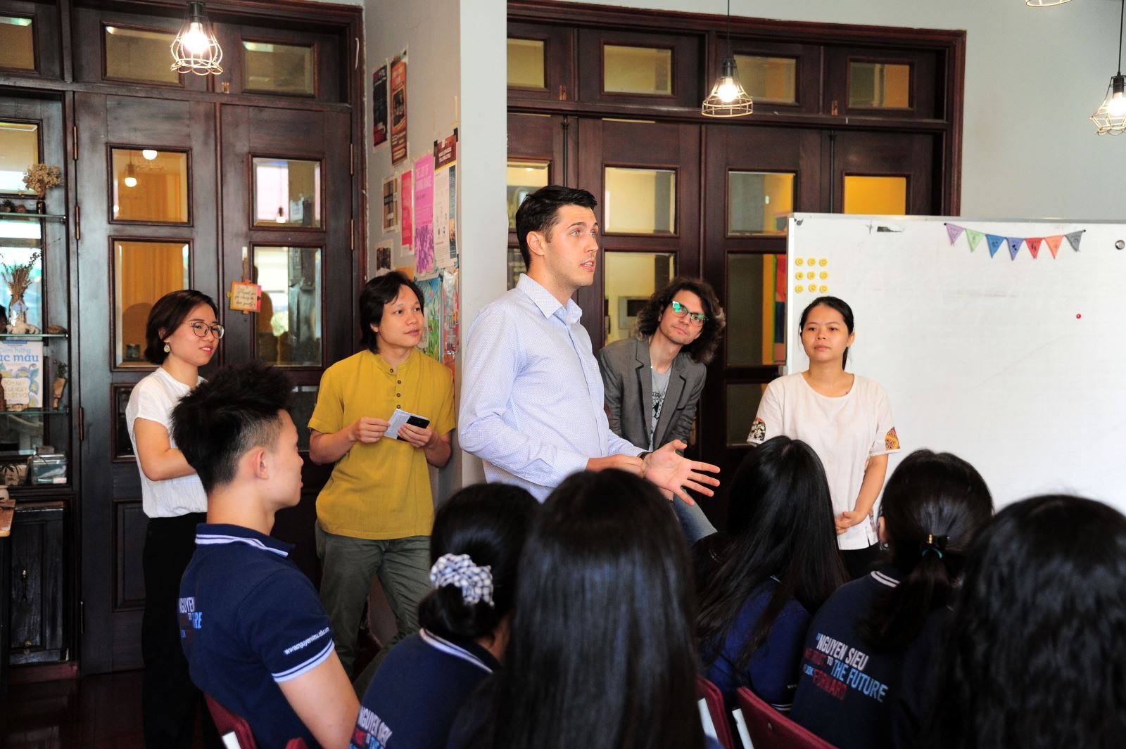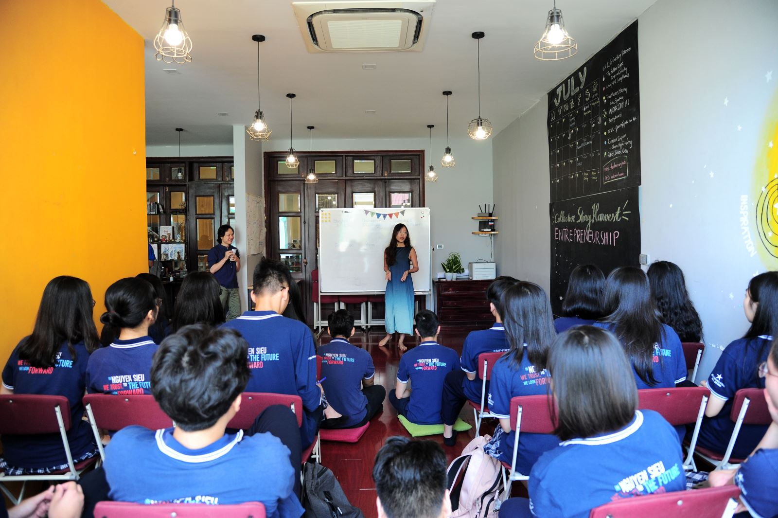Chương trình trải nghiệm sáng tạo mang tên Enterprise trip được tổ chức tại một điểm làm việc nhóm trên phố cổ Hà Nội, với không gian pha trộn giữa sự cổ kính của kiến trúc Pháp và cách bài trí hiện đại, trẻ trung, giản dị thân thiện. Tại đây, các bạn học sinh có thể vừa uống trà, cafe, tự chuẩn bị đồ ăn trưa cho mình và lắng nghe những câu chuyện khởi nghiệp "người thật, việc thật".