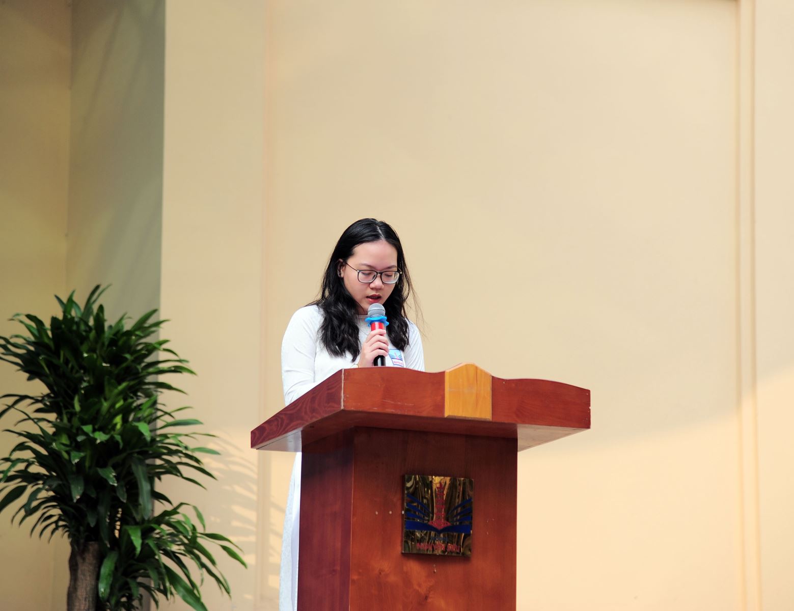 Mở đầu buổi lễ, học sinh khối 11 đã nhớ lại những kí ức hào hùng của Thủ đô trải qua bom đạn, lửa binh vẫn hiên ngang hướng đến ngày giải phóng: “Trùng trùng quân đi như sóng, lớp lớp đoàn quân tiến về…”. Đó là Hà Nội một thời sục sôi, rạo rực.