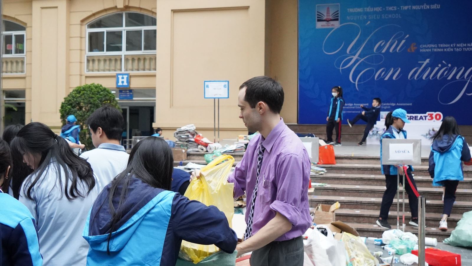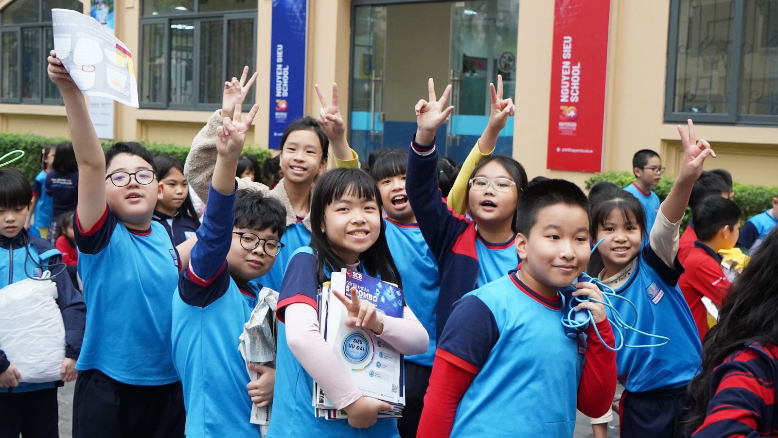 Hôm nay, 7/3/2023, ngày hội "Đổi rác lấy quà" lần 3 của Trường Nguyễn Siêu đã diễn ra trong niềm phấn khởi với ngập tràn những nụ cười "thu hoạch" rạng rỡ. Cuối ngày, khối lượng giấy loại thu được là 3.708kg, bìa carton là 319kg, 78kg nhựa, 450 vỏ lon, và 71kg pin. Trong tháng Ba của mùa xuân tươi đẹp, đây cũng là một hoạt động hết sức thiết thực và ý nghĩa để hưởng ứng 60 năm phong trào “Nghìn việc tốt”.