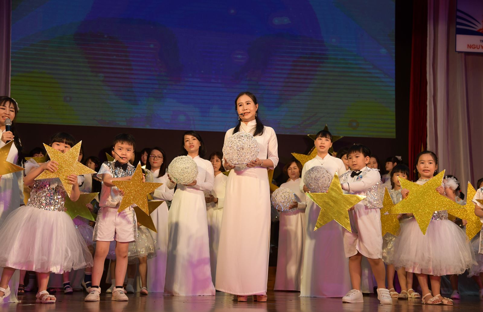 Trong lễ Bế giảng năm học, các con đã được tuyên dương, khen thưởng xứng đáng và nhận được phần quà thú vị là chương trình biểu diễn nghệ thuật của tập thể giáo viên, học sinh nhà trường và tiết mục hài kịch của các diễn viên Nhà hát Tuổi trẻ.
