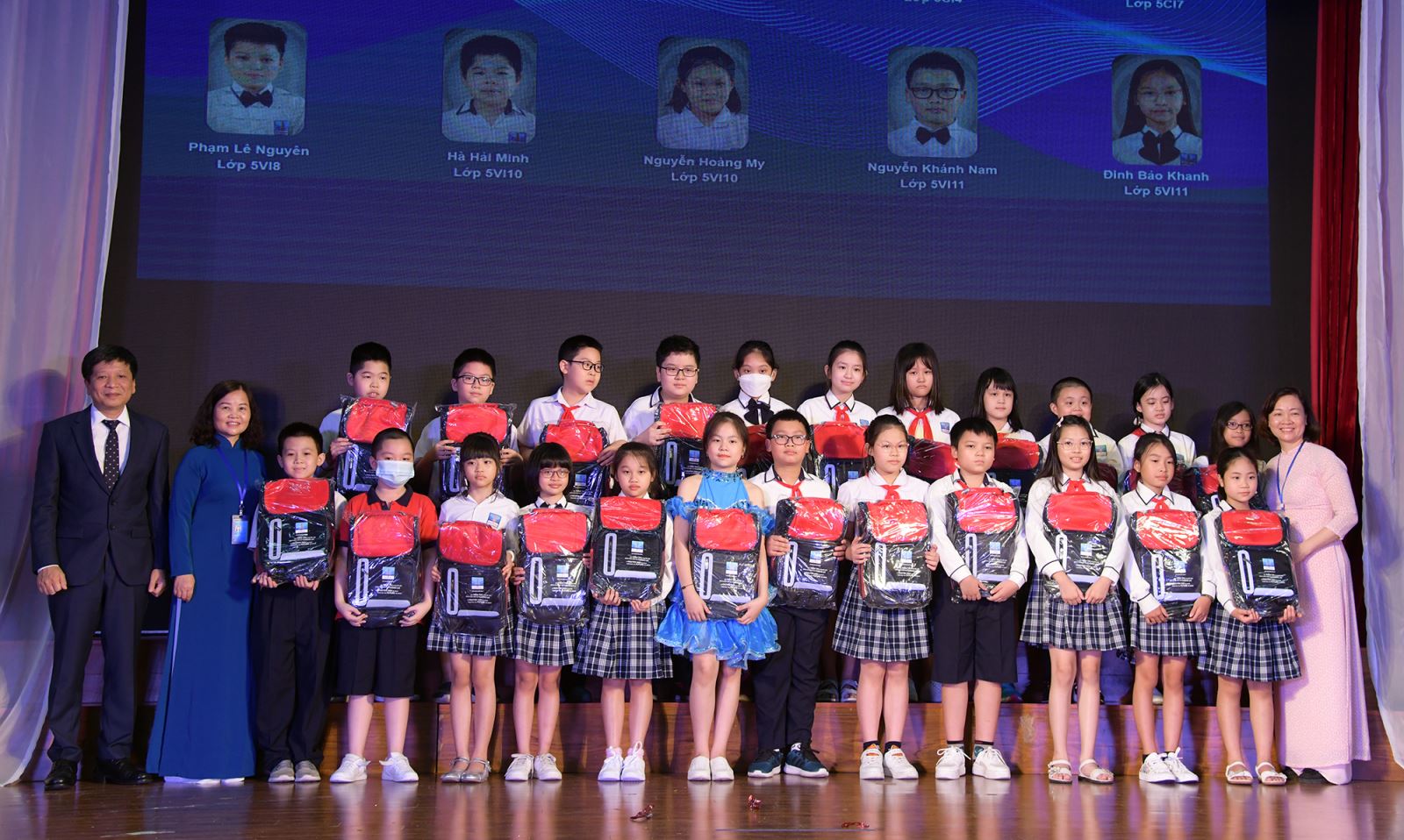 Điểm nhấn trong phần lễ vinh danh các học sinh có thành tích xuất sắc năm học 2021-2022, đó chính là: những giáo viên truyền cảm hứng, là động lực cho học sinh trong những năm học vừa qua đã lên sân khấu trao phần thưởng cho các con. Cha mẹ học sinh đưa các con lên nhận phần thưởng, cô Phó Hiệu trưởng Nguyễn Thị Thanh Nhàn và người giáo viên các con yêu quý đón các con trên sân khấu, trao chứng nhận và trao quà. Cuối cùng, CMHS mang hoa lên tặng cho người giáo viên truyền cảm hứng, hỗ trợ sự thành công của con.