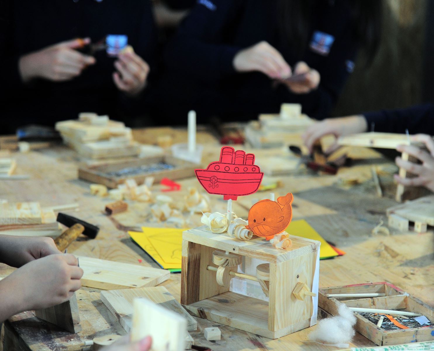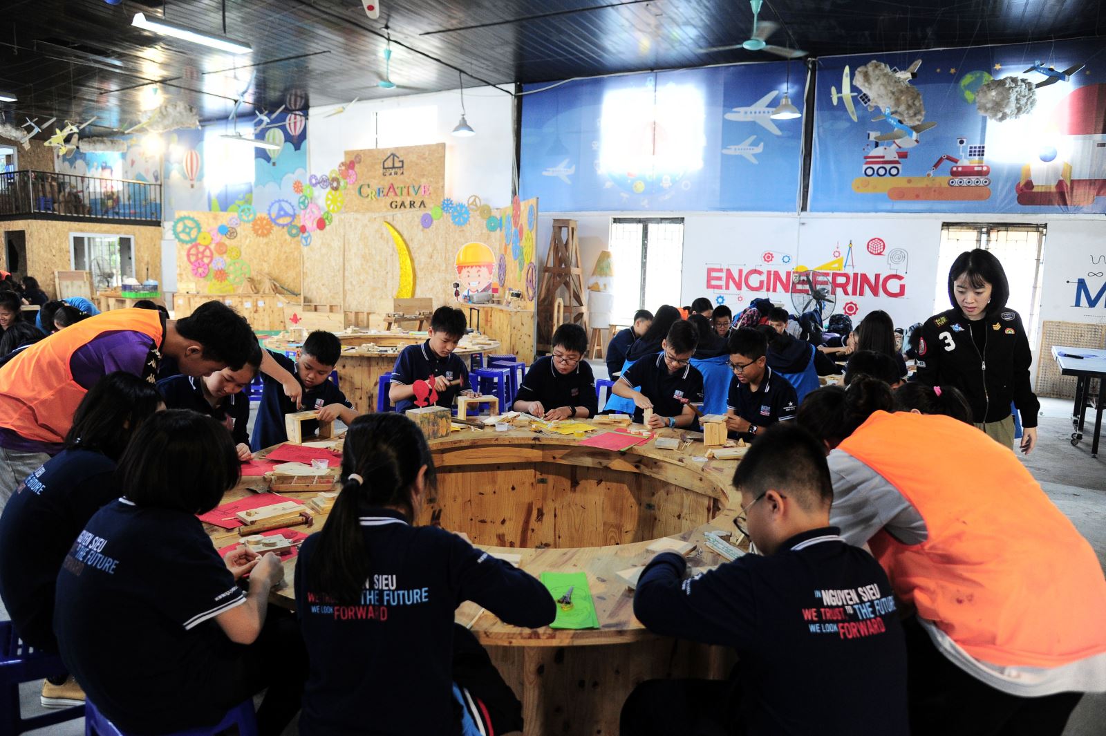 Một góc xưởng mộc, nơi các bạn hóa thân thành những người thợ tỉ mỉ, khéo léo