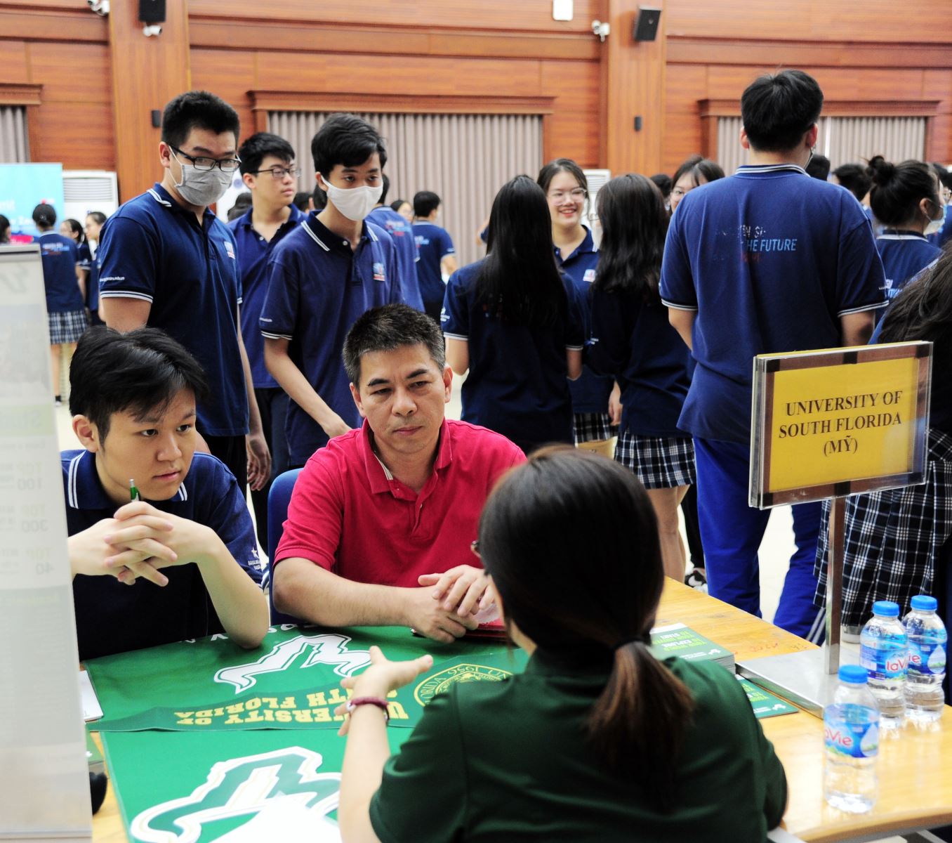 Học sinh và cha mẹ tham vấn trực tiếp tại các quầy giới thiệu của các trường