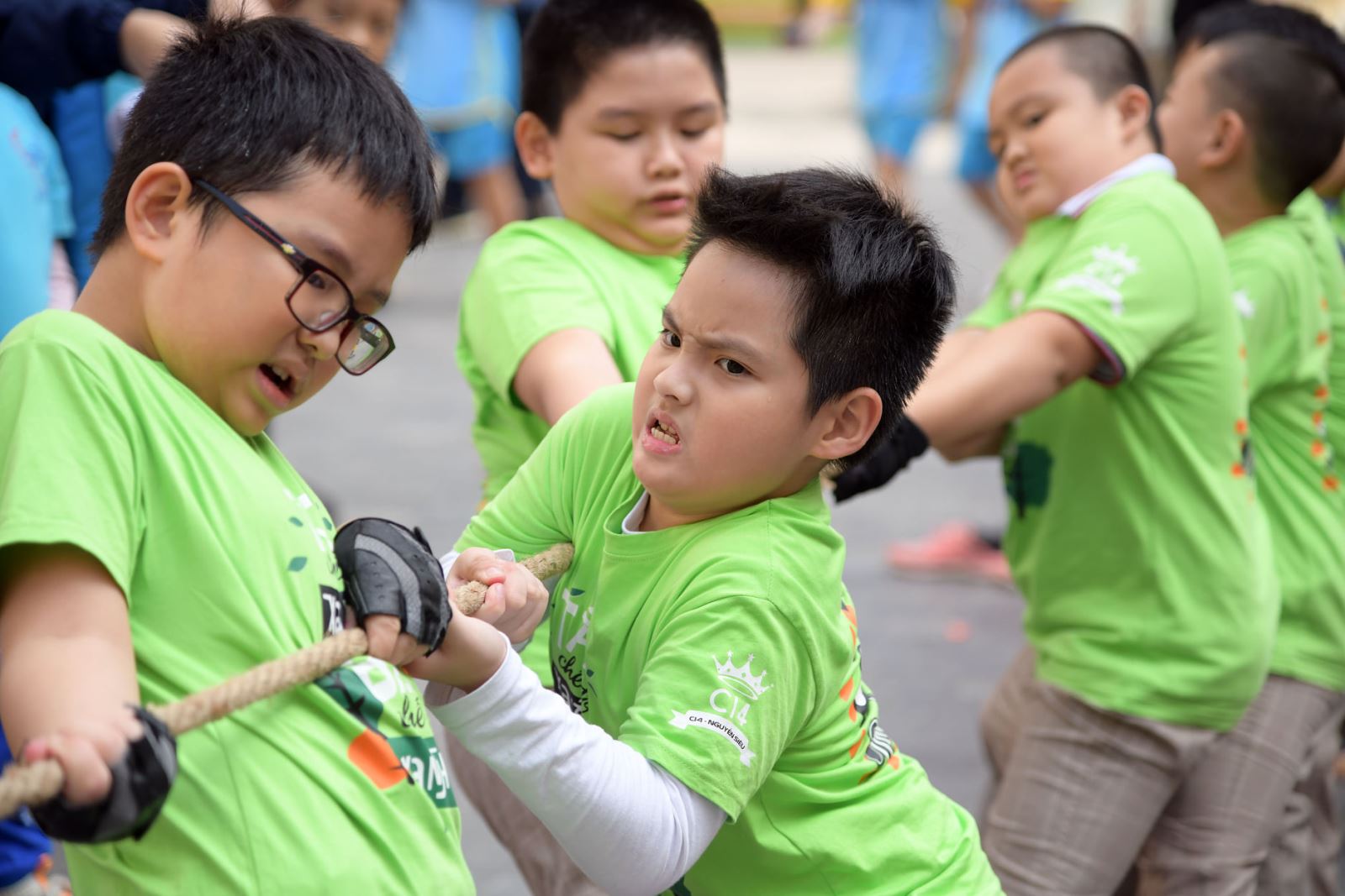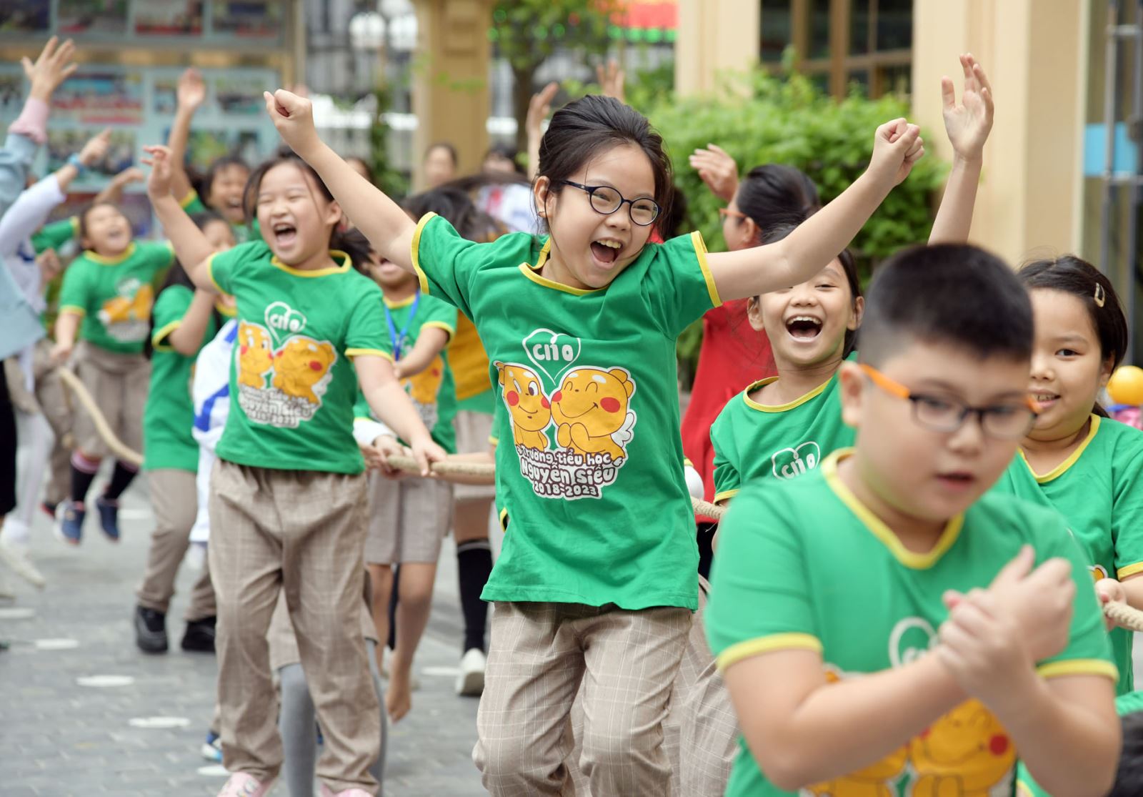 Thi đấu kéo co của học sinh Tiểu học tạo ra bầu không khí cuồng nhiệt mỗi giờ ra chơi.