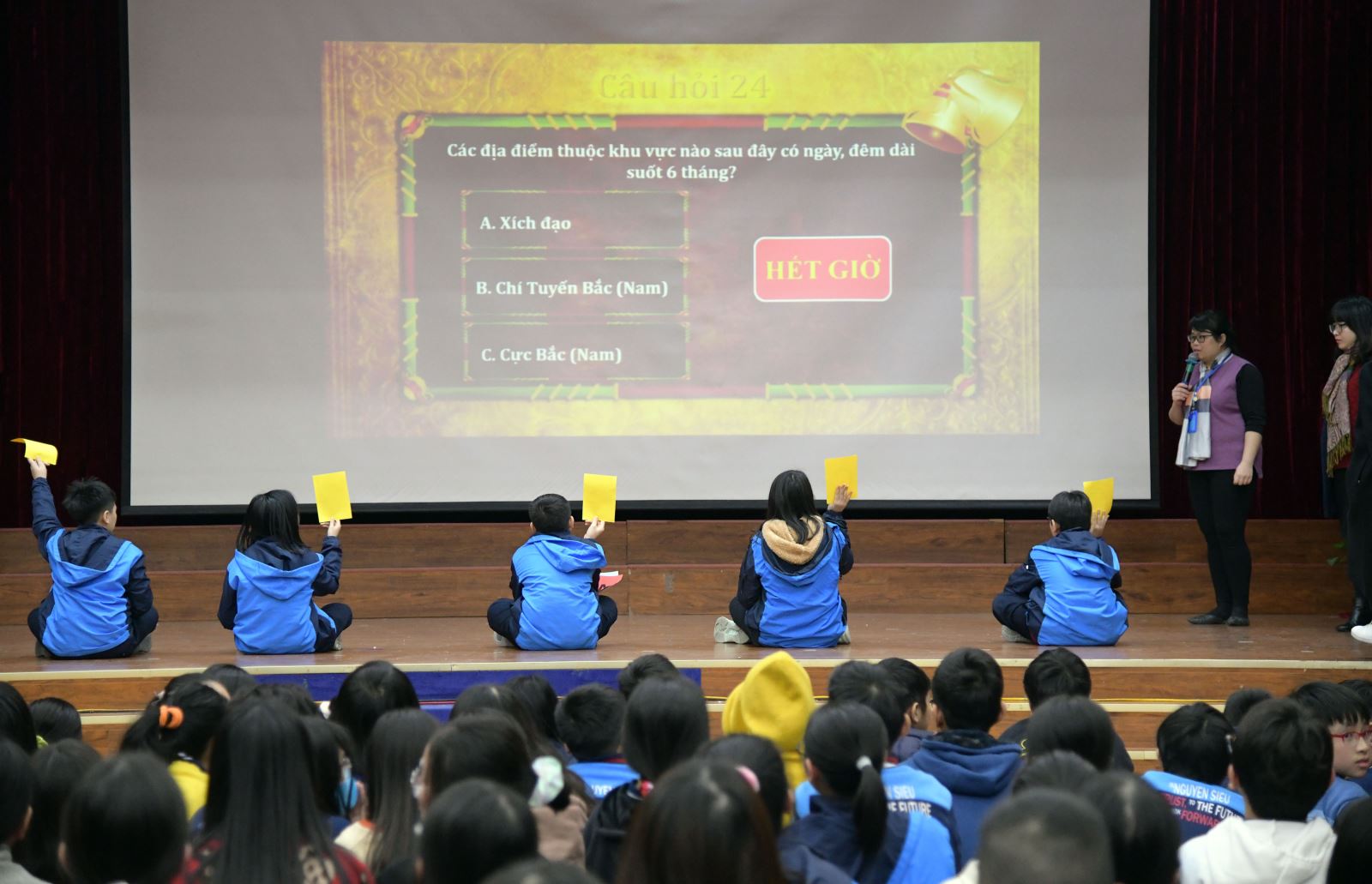 Chiều 12/1/2021, cuộc thi Rung chuông Vàng khối 6 đã được tổ chức nhằm củng cố và nâng cao kiến thức cho các em về liên môn Lịch sử - Địa lý. Trải qua phần thi căng thẳng và hồi hộp, phải đến câu cuối cùng (30), người thắng cuộc mới xuất hiện, đó là bạn Lương Trung Hiếu (6CI5).