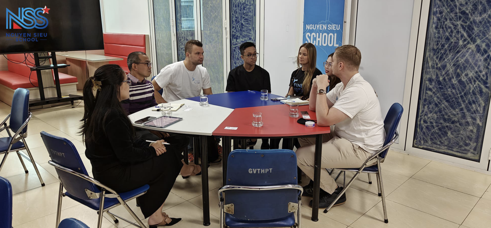 Ông Nguyễn Hoàng Lâm – Giám đốc vận hành khối Song ngữ, bà Đỗ Tam Thái – Trưởng nhóm Dịch vụ Giáo dục cùng đại diện giáo viên đã tiếp đón đoàn Finest Future, giới thiệu về mô hình học tập và các giá trị cốt lõi của nhà trường. Tỷ phú Peter Vesterbacka và các thành viên đặc biệt ấn tượng với thành tích học tập của học sinh trường Nguyễn Siêu và những thành tích mà học sinh cùng thầy cô đạt được trong thời gian qua.