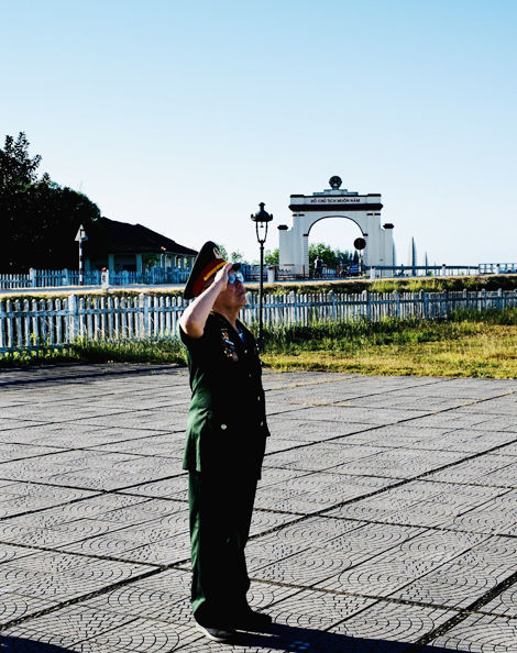 Đại tá Nguyễn Trọng Vĩnh làm lễ chào cờ tại cột cờ bên bờ Hiền Lương