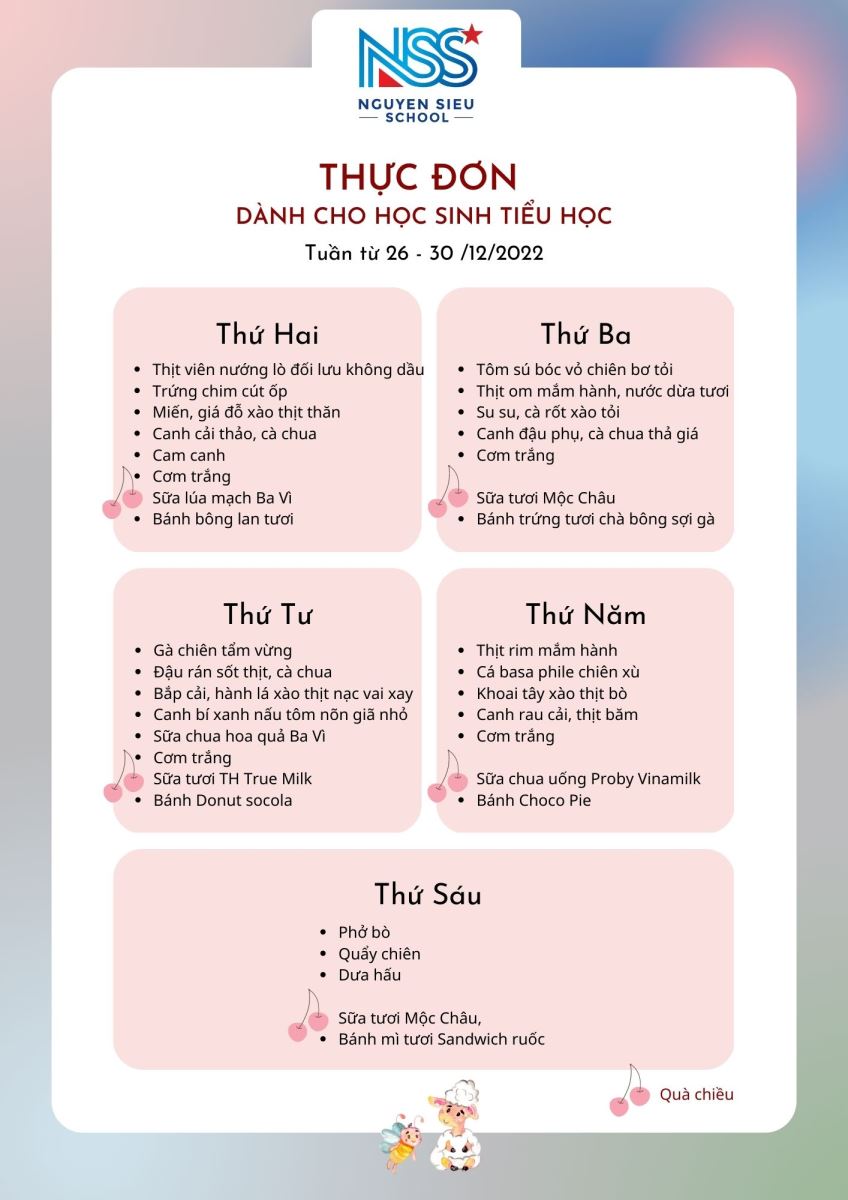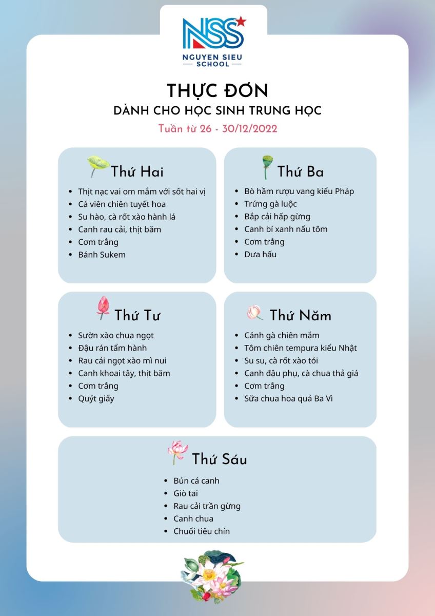 Thực đơn Tuần 26-30/12/2022