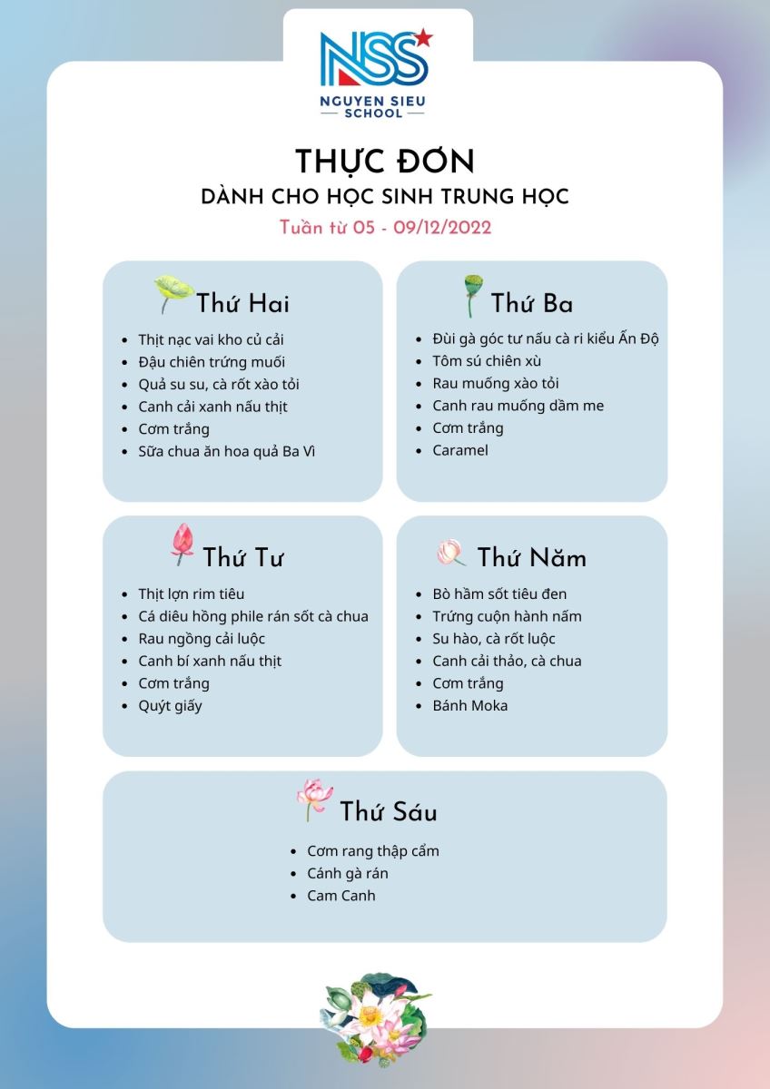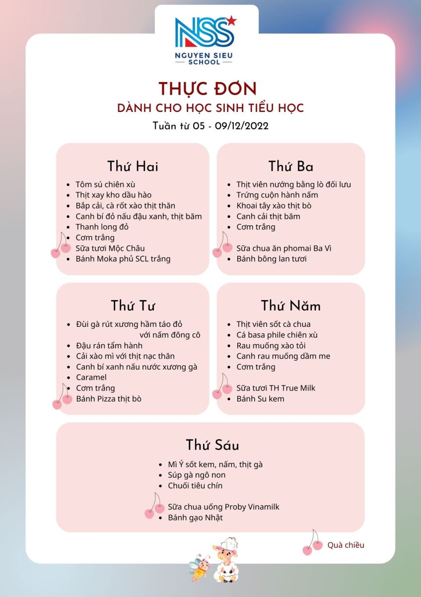 THỰC ĐƠN TUẦN 5/5 - 9/5/2025