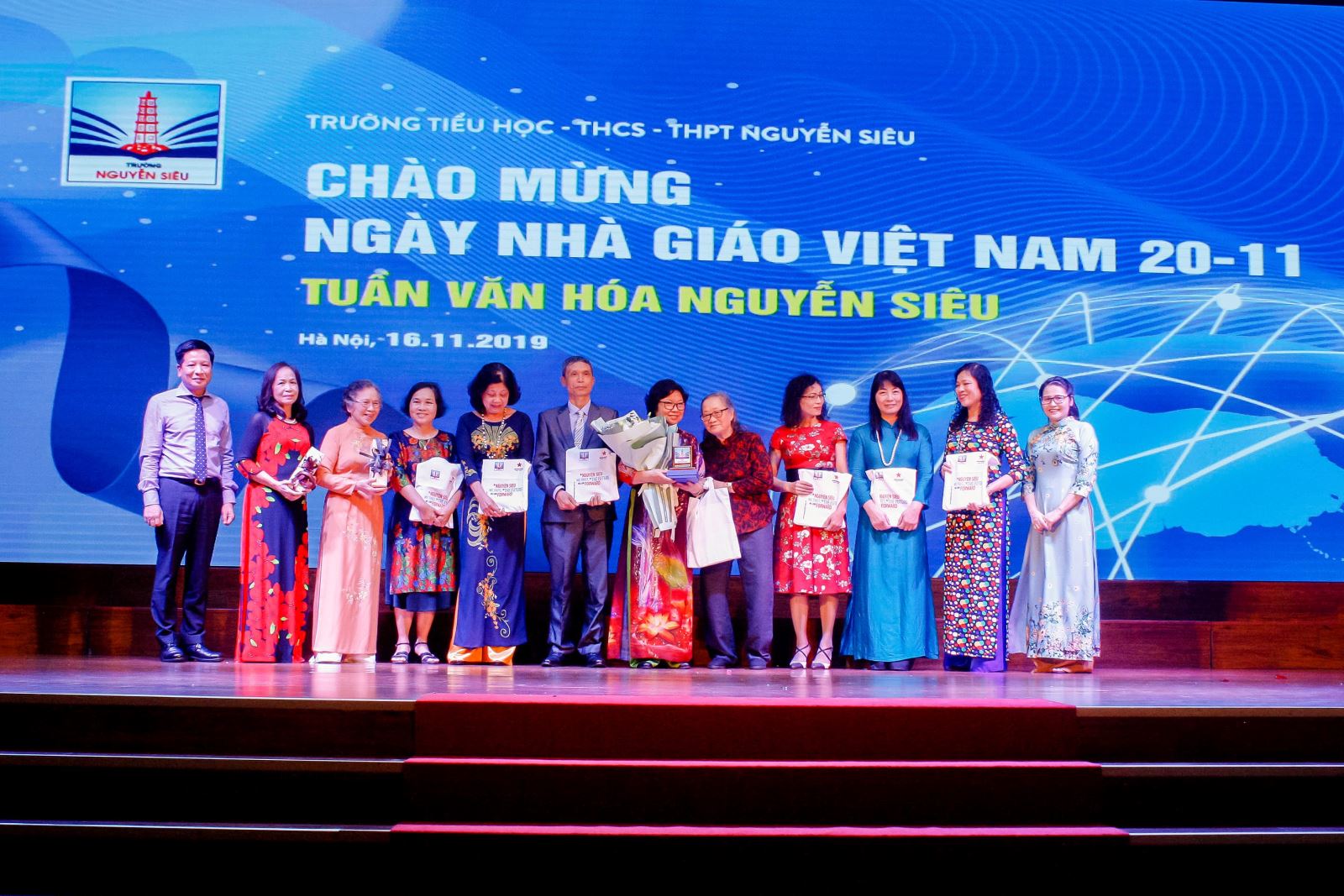Sáng ngày 16/11, chương trình kỉ niệm 37 năm thành lập Ngày Nhà giáo Việt Nam được diễn ra trong không khí ấm cúng, cảm động. Đây là dịp để ngôi nhà lớn Nguyễn Siêu đón chào lớp lớp những thế hệ người lái đò quây quần về đây, cùng nhau chuyện trò, nhắc lại những chuyện cũ và gửi gắm những ước nguyện, trách nhiệm trong tương lai...